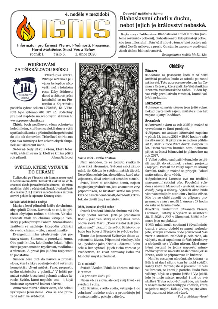 „Nový rok“ 1. 1. 2027 MATKY BOŽÍ PANNY MARIE NEBUDE –Stará Ves, možnost v Horní Moštěnici v 11:00 hod