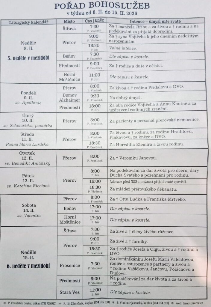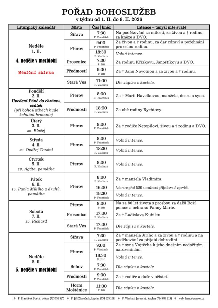 vždy po domluvě na faře v Přerově