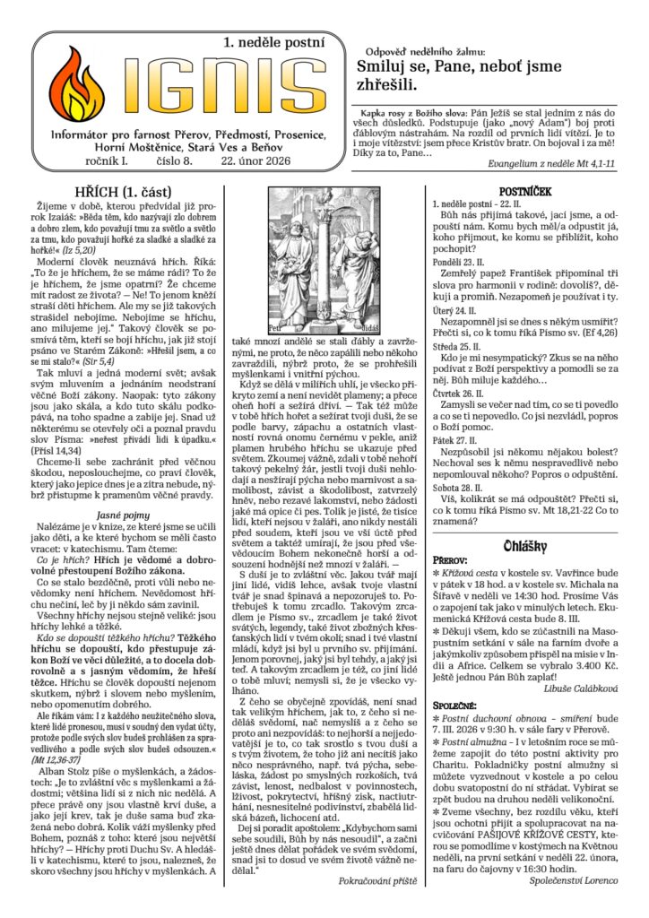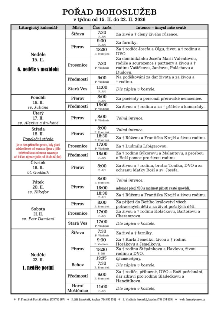 V době postní každý pátek mše svatá v xx:00, před ní xx:xx křížová cesta.